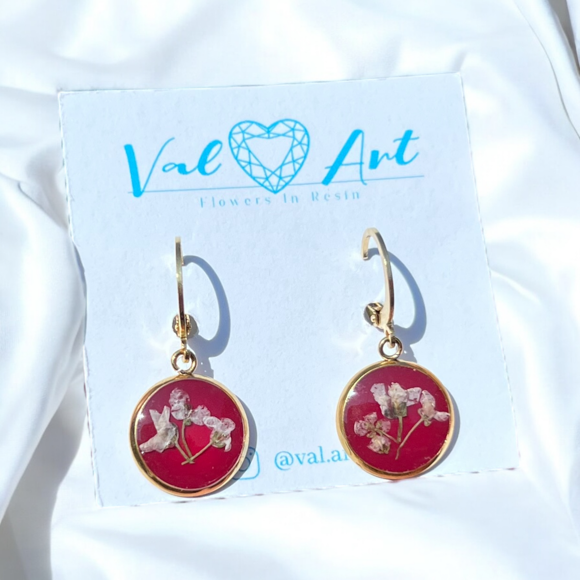 Luce estos aretitos brillantes por su tonalidad roja con mini florecitas llamadas Alyssum, los aretitos más encantadores que resaltaran junto con tu outfit.
